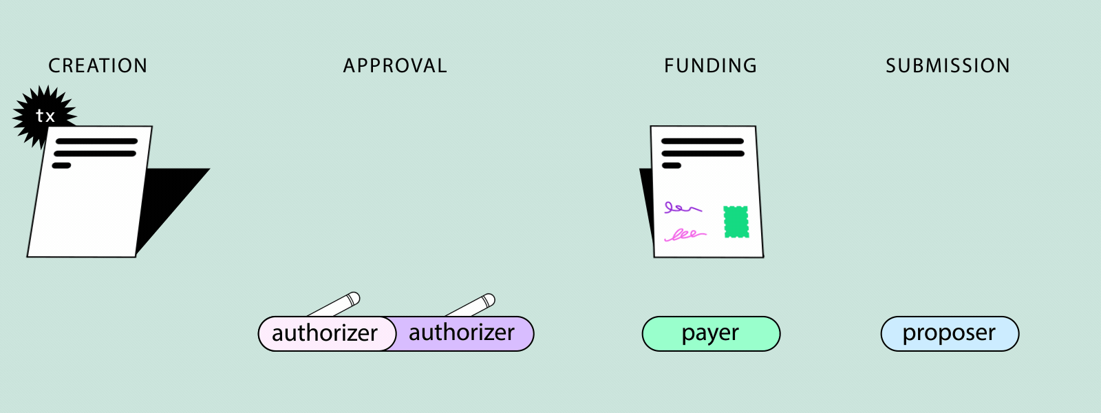 Each transaction comprises three separate roles that securely and flexibly manage permissions: