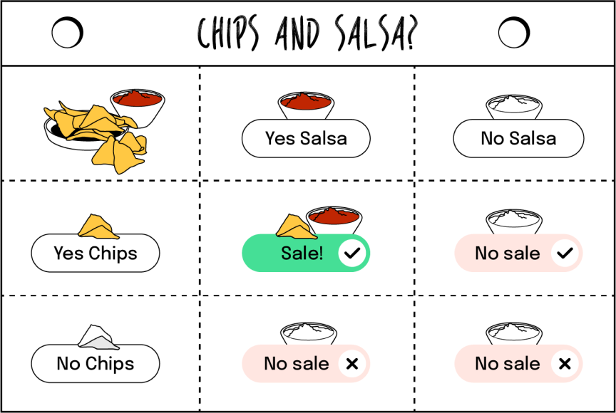 Pre- and post-condition-based transactions check the network state before executing. For example, a grocery app can use pre-conditions to check inventory for item pairs like salsa and chips before purchase. Post-conditions ensure both items are bought together, or not at all. This building block is a major unlock for apps wanting to do more with transactions.