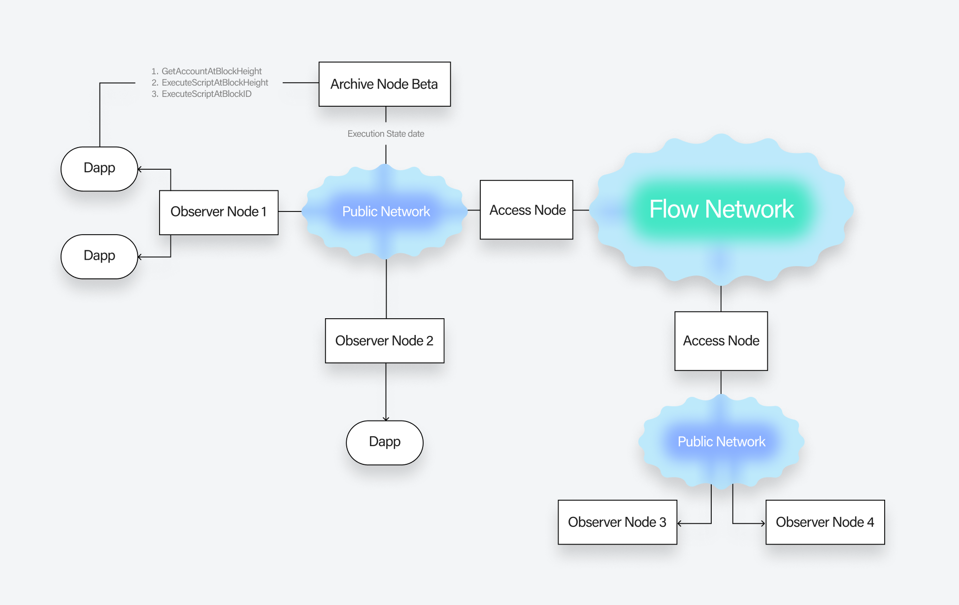 We are excited to announce the Open Beta of the Flow community archive node. The archive node provides a scalable and efficient way to access the execution state history of the Flow protocol **for the current spork. It can be used to query for account details and execute scripts at any given block from the start of the current spork to the latest sealed block using the gRPC Access API.