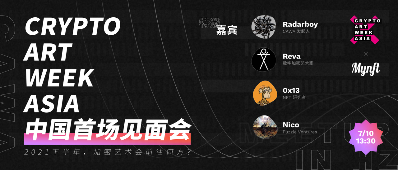 On July 10, Mynft and CryptoArt Week Asia (CAWA) will co-host an NFT-themed meetup in Hangzhou, China. The first CAWA was held in Singapore in January, 2021, CAWA is a non-profit and artistic-centric event aimed at strengthening the links among Asian artists and improving the reputation of the outstanding Asian artists all over the world.