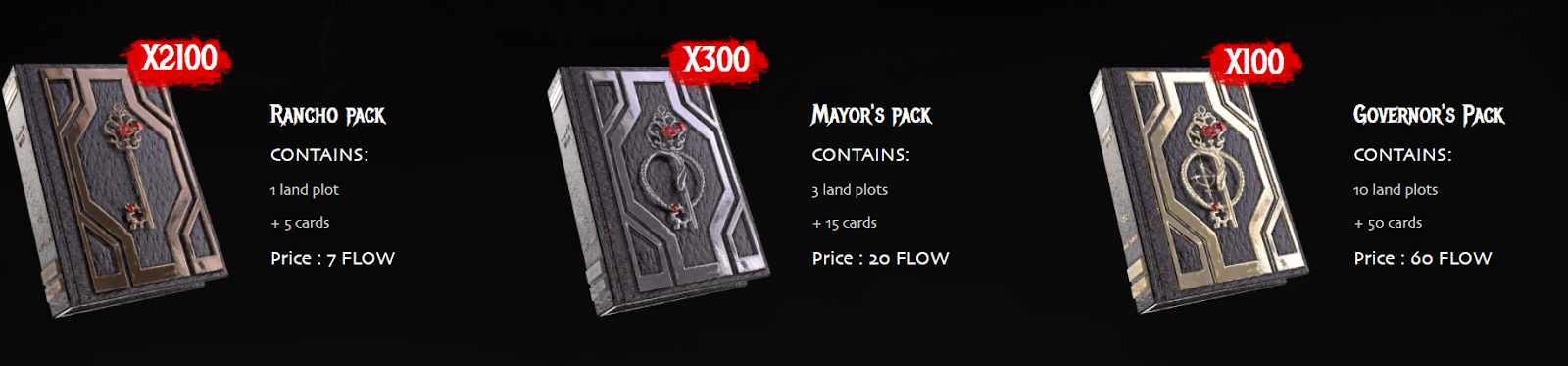 There will be three types of Land packs available in our first presale drop: Rancho (the smallest), Mayor’s (middle-sized), and Governor’s (the largest). Each pack will contain a Land Plot card, plus cards from a brand new Vampire set.