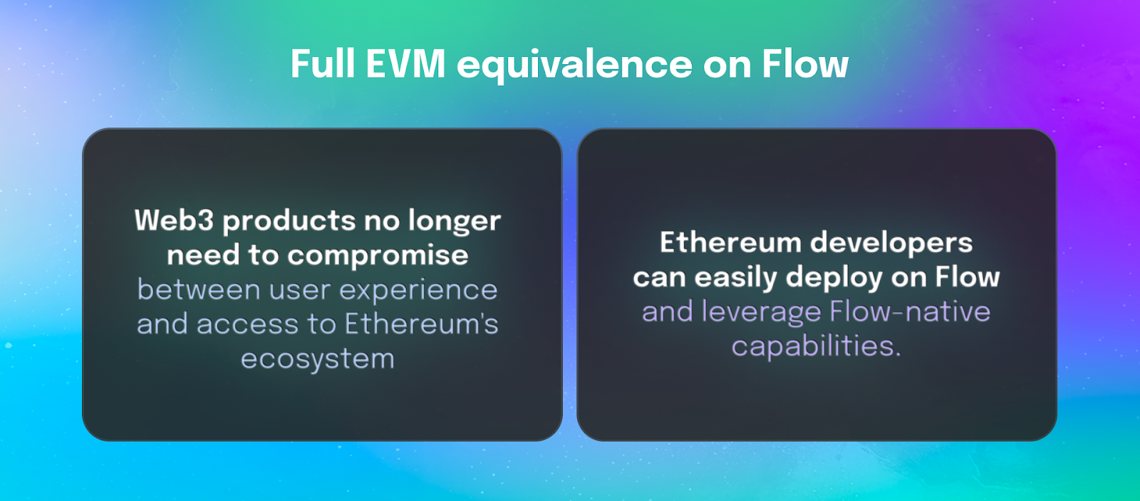 The latest update to Flow (Crescendo) was the biggest upgrade to the network since genesis. It introduced full EVM equivalence and support for Solidity (any smart contract or protocol that works on Ethereum mainnet or an EVM L2 to work out of the box on Flow) alongside major performance upgrades (all future Cadence code is now forwards compatible — no updates required!).
